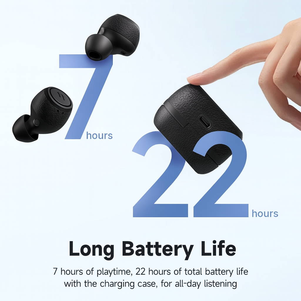 •  Enjoy up to a total of 22 hours of playback.